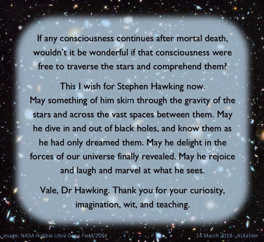 To wish upon a star… Farewell, Professor Hawking Share this: Click to share on X (Opens in new window) X Click to share on Facebook (Opens in new window) Facebook Like Loading... Related Comments are closed.