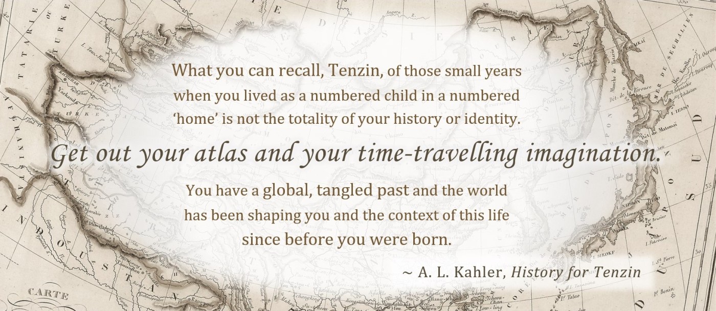 ‘What you can recall, Tenzin, of those small years when you lived as a numbered child in a numbered ‘home’ is not the totality of your history or identity. Get out your atlas and your time-travelling imagination. You have a global, tangled past and the world has been shaping you and the context of this life since before you were born.’